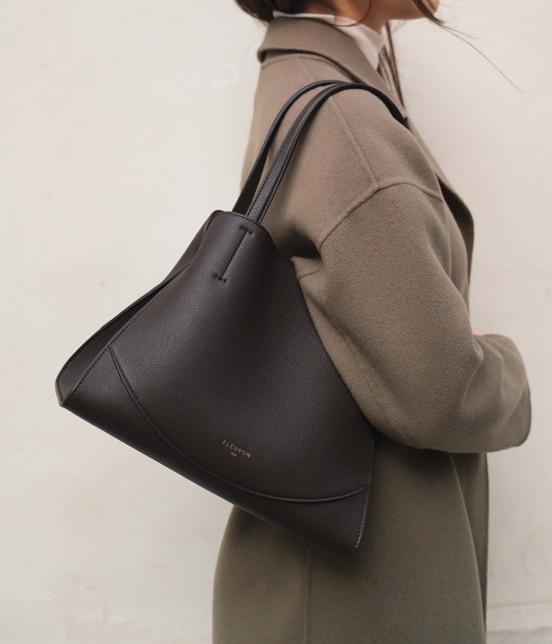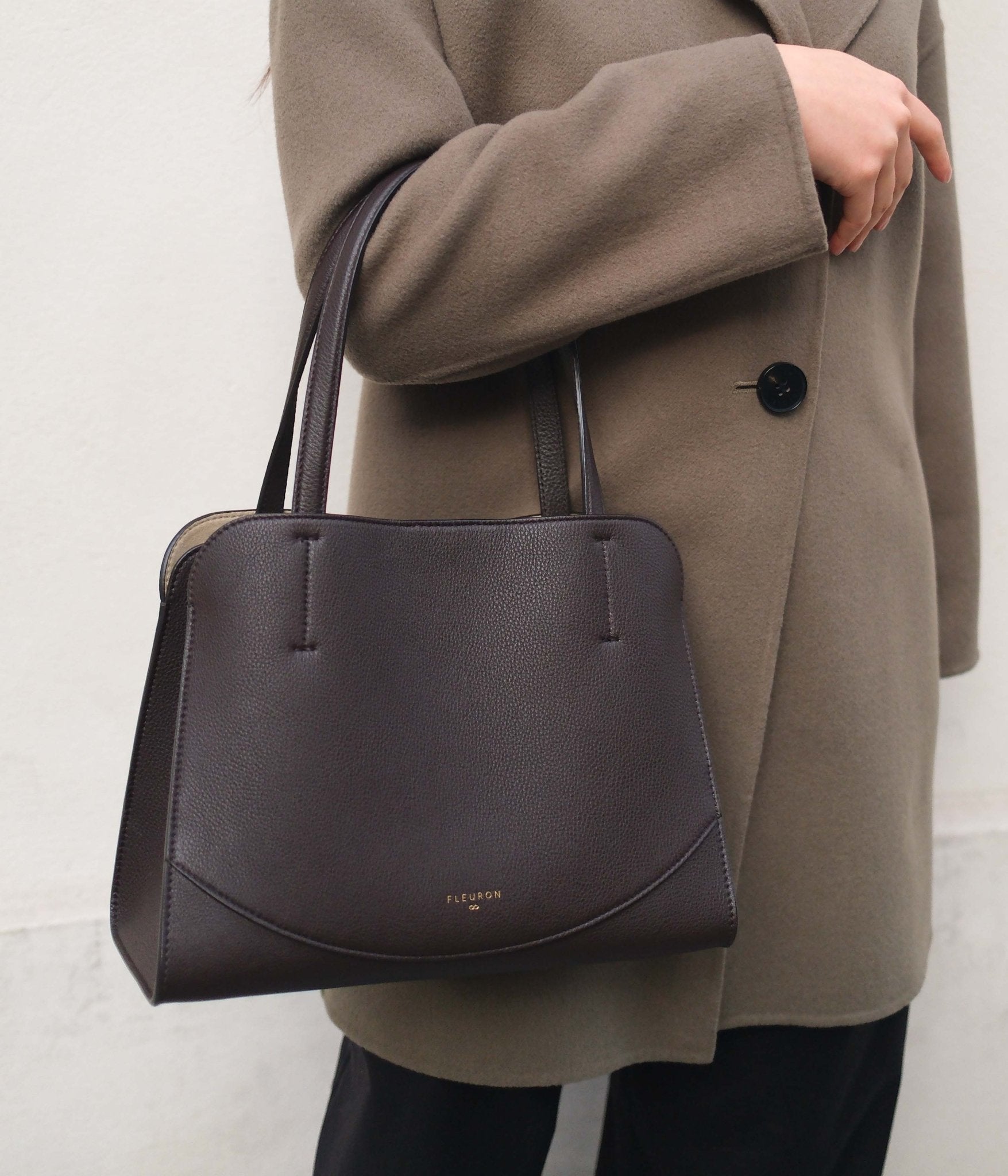 The Mini Oak in Espresso grained calfskin stands out with its confident character and compact format, making it ideal for everyday wear with effortless elegance. Its structured yet supple silhouette offers just the right amount of space for your essentials while maintaining a refined look.