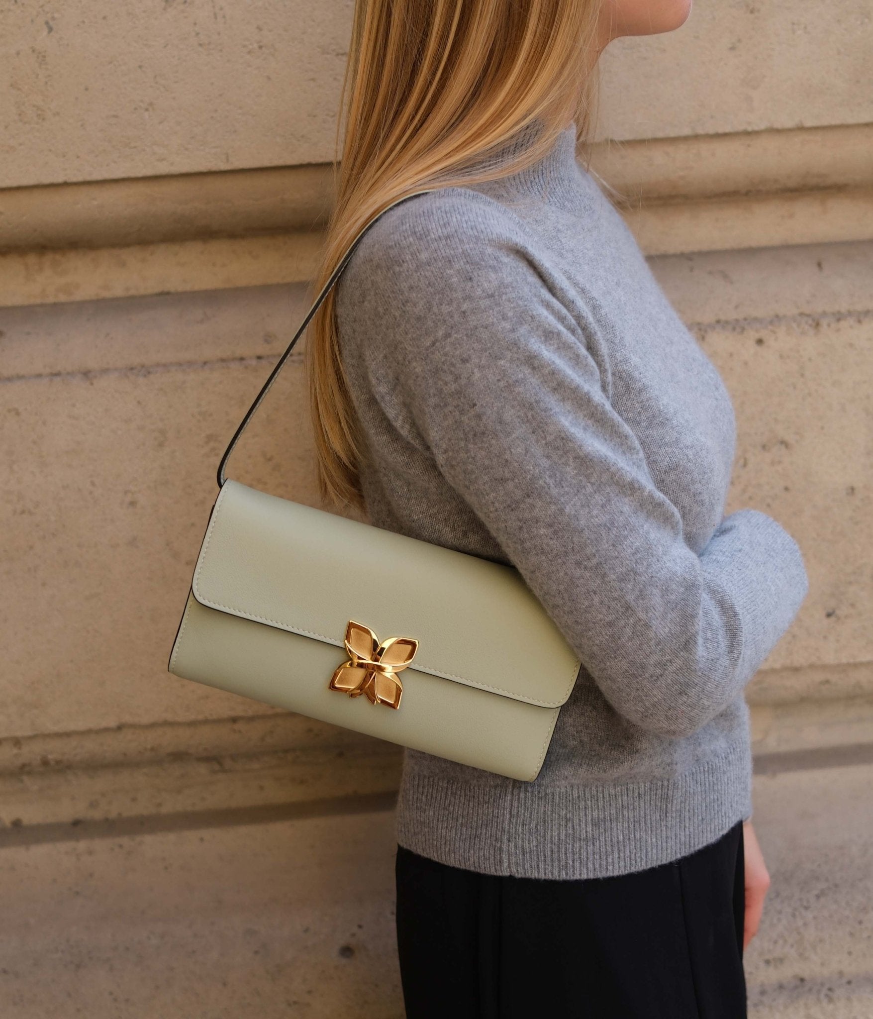 Embrace the fresh elegance of the Hortensia Clutch in Smooth Vert d'Eau Calfskin. Handcrafted in Italy, this piece reimagines the iconic Hortensia bag in a sleek, delicate, and contemporary format.