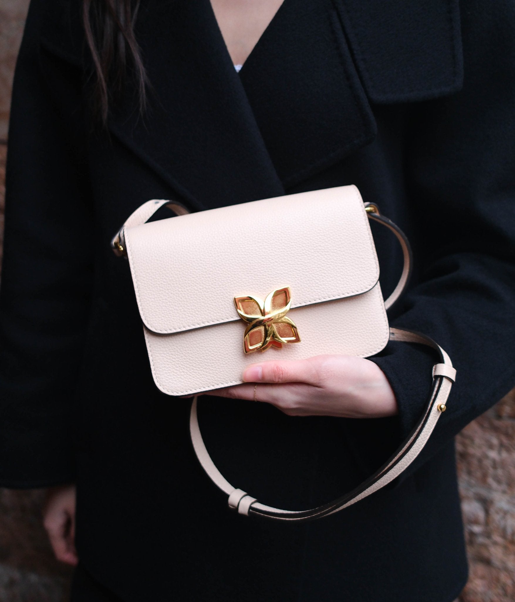 Let yourself be captivated by the delicate charm of the Mini Hortensia in Light Pink, where the grained calfskin reveals a soft, luminous shade with a subtle hint of freshness. Carefully crafted in Italy, this bag perfectly embodies the balance between artisanal craftsmanship and sleek design.