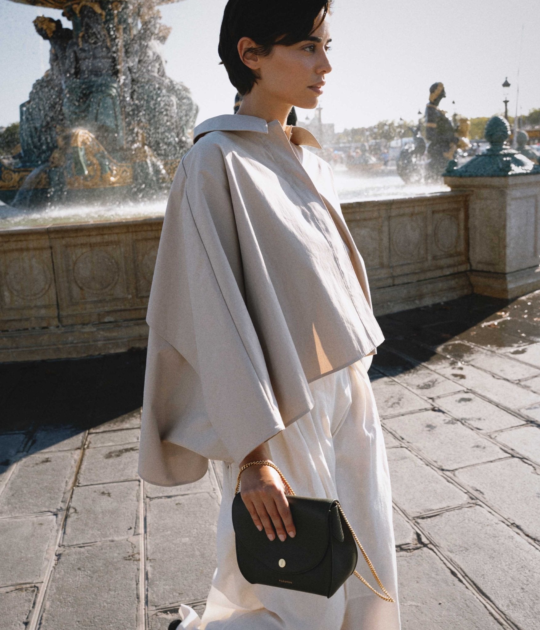 When available in its miniature version, the Magnolia bag displays a new coquetry. It is dressed with a pretty golden chain, elegant and discreet. It borrows its refined symmetry and elaborate style from architecture, while botany inspires light and sensual curves.
