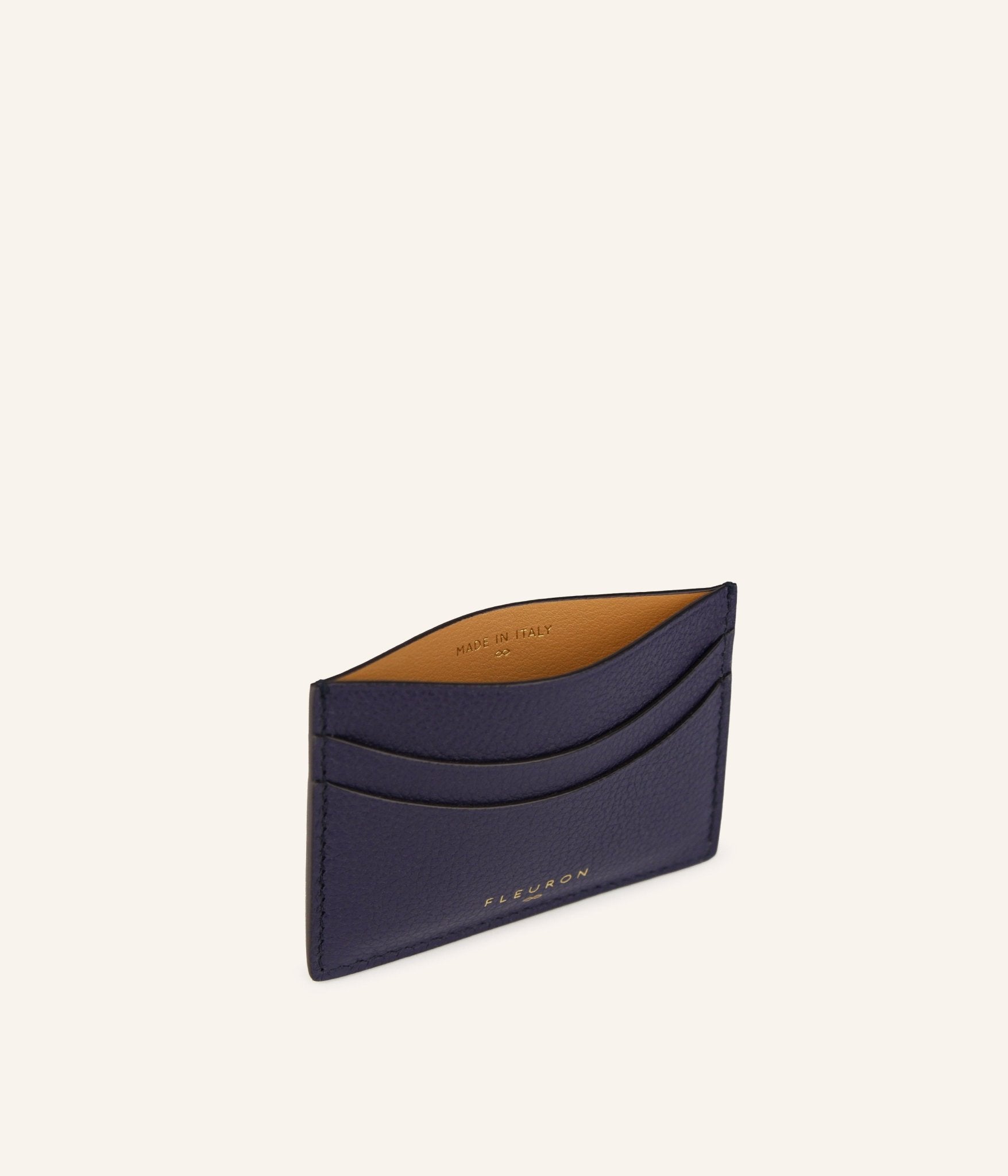 To carry just the essential cards. Enjoy the compactness and finesse of the silhouette of our Navy Blue card holder, an ideal accessory to integrate into a clutch or small evening bag. Handmade in Italy, this grained calfskin card holder is essential for storing your essential cards.