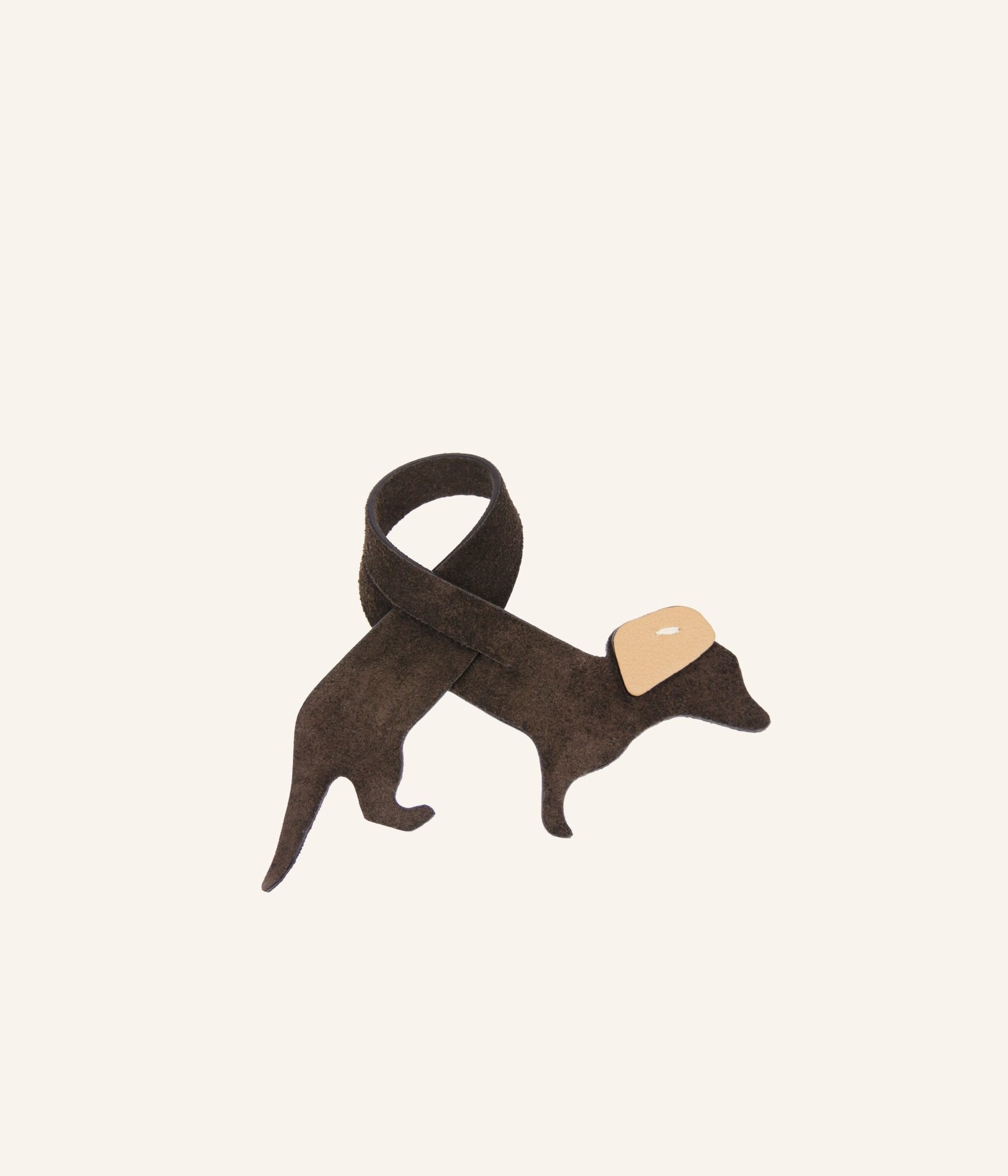 With its playful charm and endearing gaze, the Dachshund Charm captures the warmth and loyalty of this beloved companion. A refined detail that adds a touch of character and affection to every moment. Our Teckel Charm in Calf Suede Moka, with its deep shade and charming design, brings a sophisticated and warm touch to your bags. Handmade in Italy from exceptional suede, it attaches easily to a handle or shoulder strap, enhancing your accessories with a refined and timeless detail.