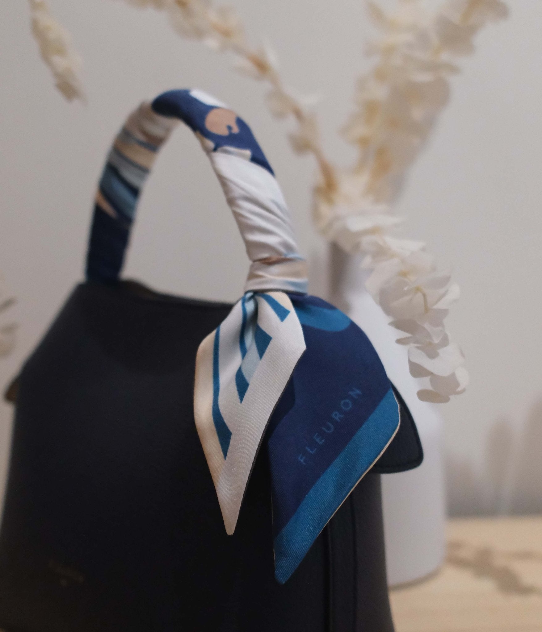 Inspired by the hushed atmosphere of the night, the "La Nuit" bandeau reveals a palette of deep blues and delicate motifs, evoking a silent landscape softly lit by the moon. Its rich, intense shades bring a sense of understated elegance, designed to elevate an outfit with subtle refinement.