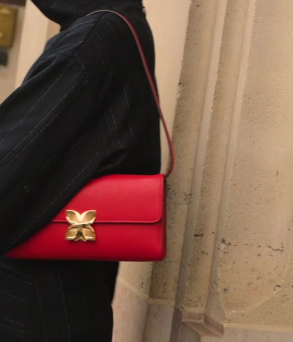 Step into the bold elegance of the Hortensia Clutch, crafted in smooth calf leather in a striking Goji Berry shade. Meticulously made in our Italian ateliers, this refined version of the iconic Hortensia bag brings a streamlined silhouette and a burst of character to any outfit.