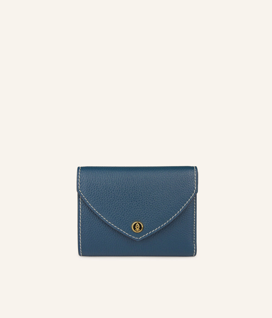 The Via wallet in Bleu Pacifique stands out with its fresh, luminous tone, a reflection of modern, effortless elegance. Crafted from premium grained calfskin, it combines clean lines with meticulous finishing. Compact yet functional, it features thoughtfully arranged compartments for cards and bills while fitting easily into your bag. An Italian creation that embodies artisanal craftsmanship and the timeless elegance of Fleuron.