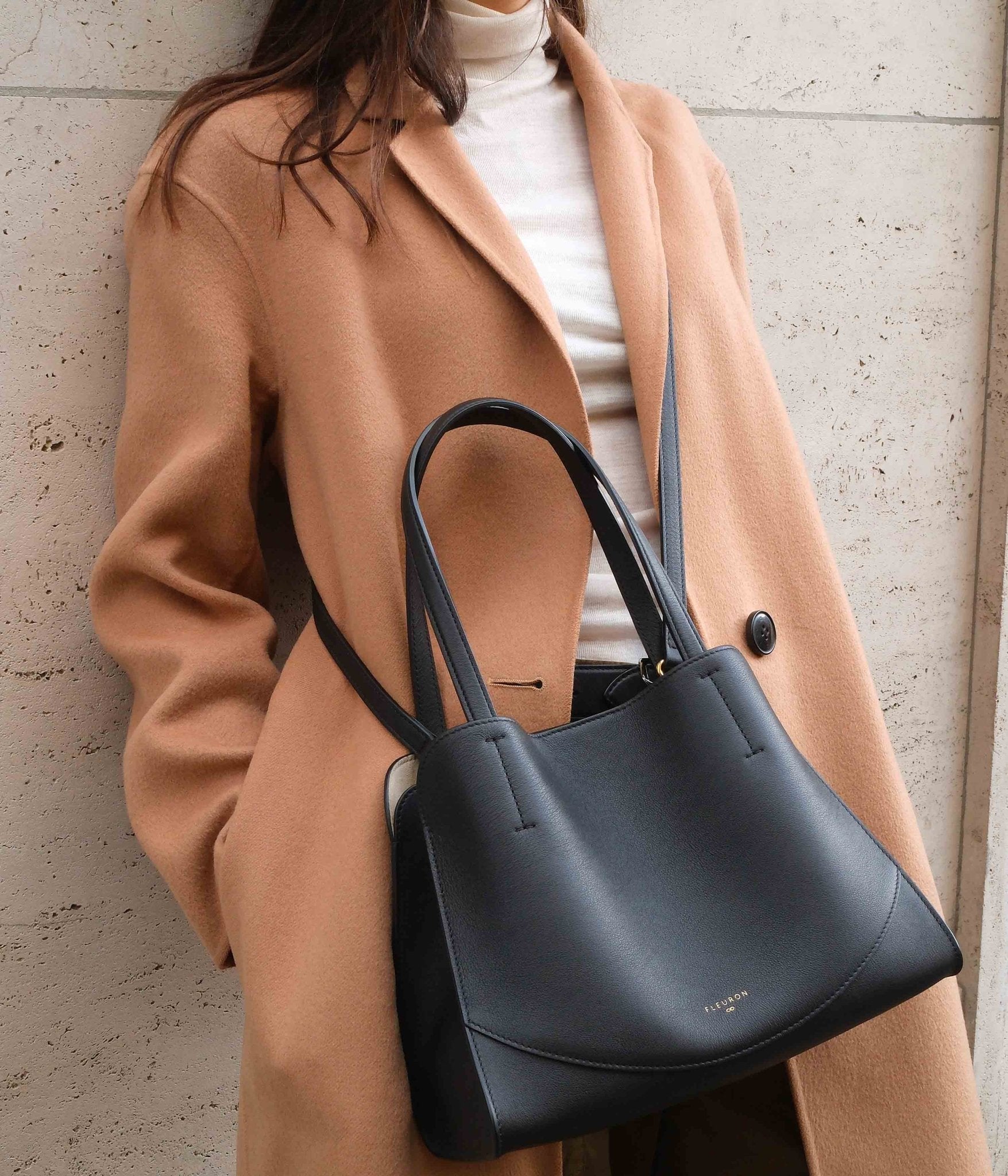 The Mini Oak in Smooth Black Calfskin embodies sleek, contemporary elegance. Its structured silhouette offers generous space for your essentials while maintaining clean, refined lines.