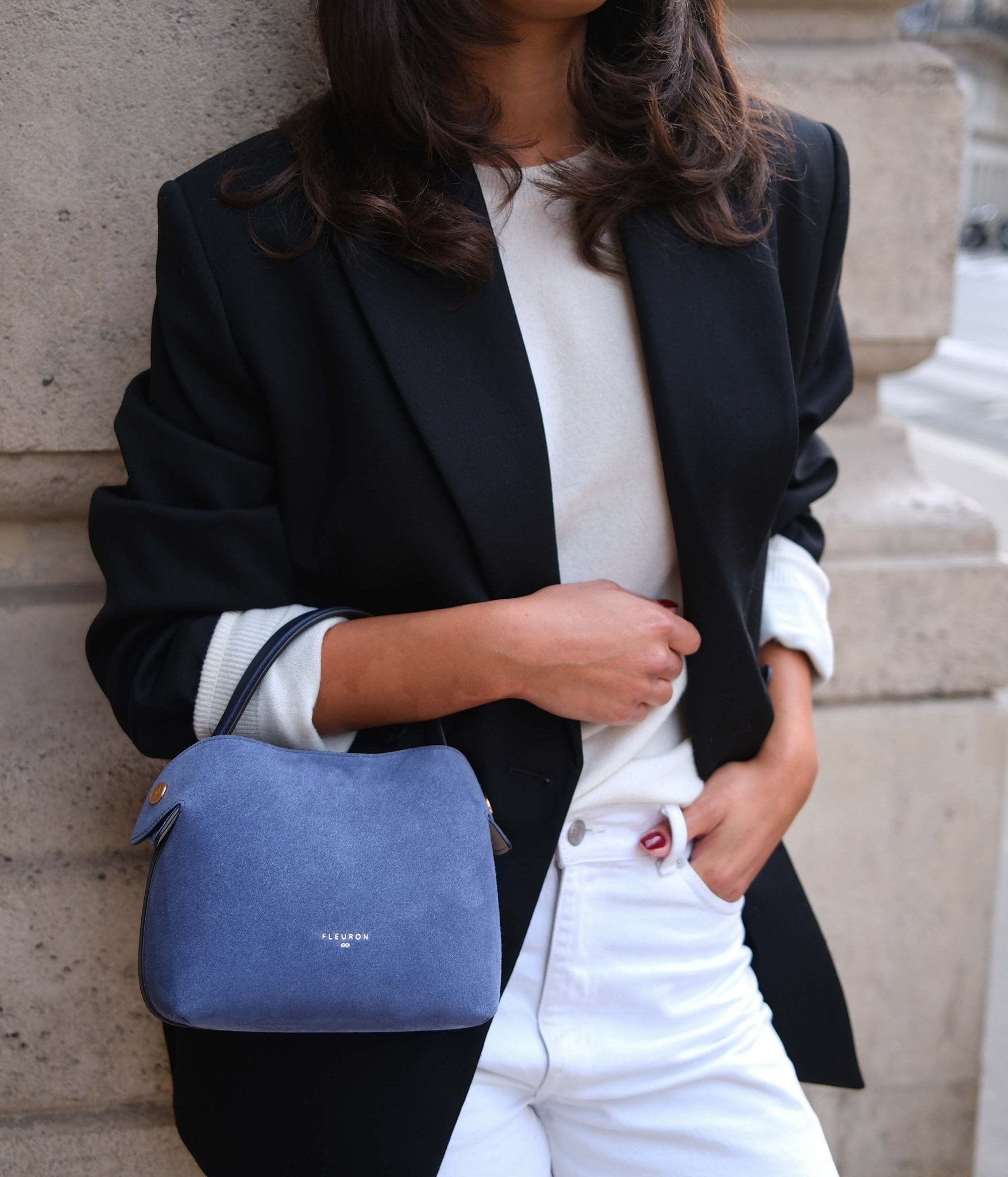 Its Jeans shade, both deep and versatile, pairs effortlessly with light tones such as ecru, beige, or grey, while also complementing stronger colors like black, camel, or burgundy for a bold yet elegant look.