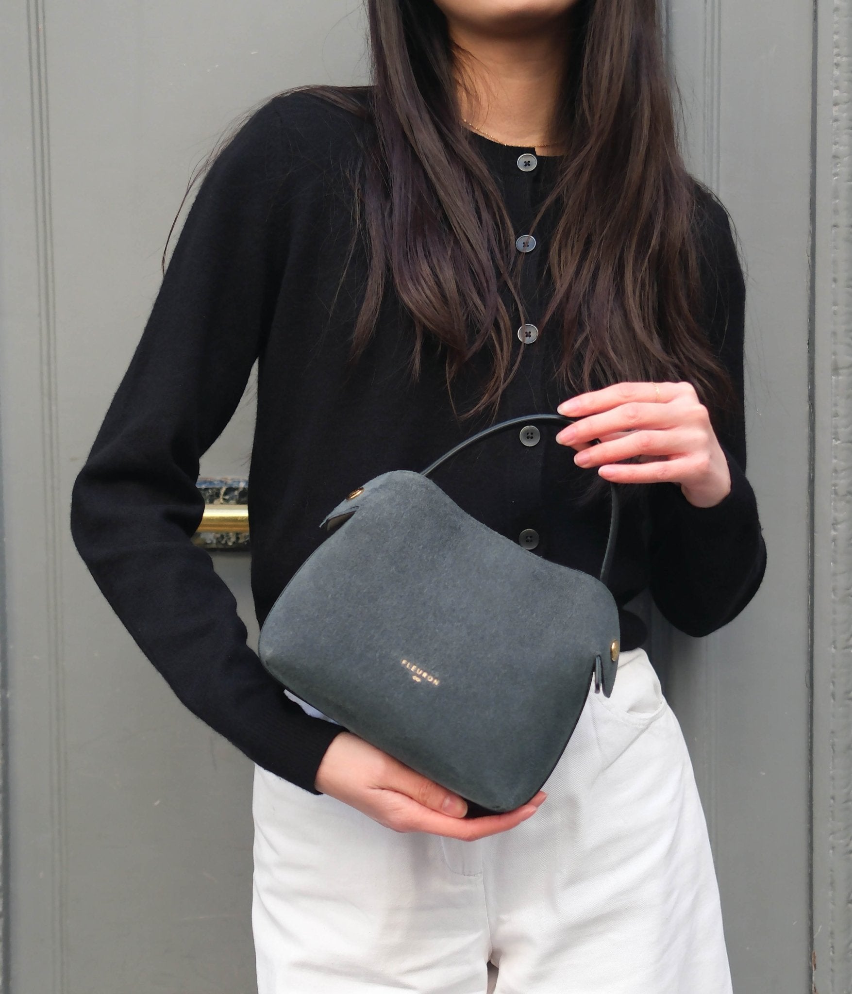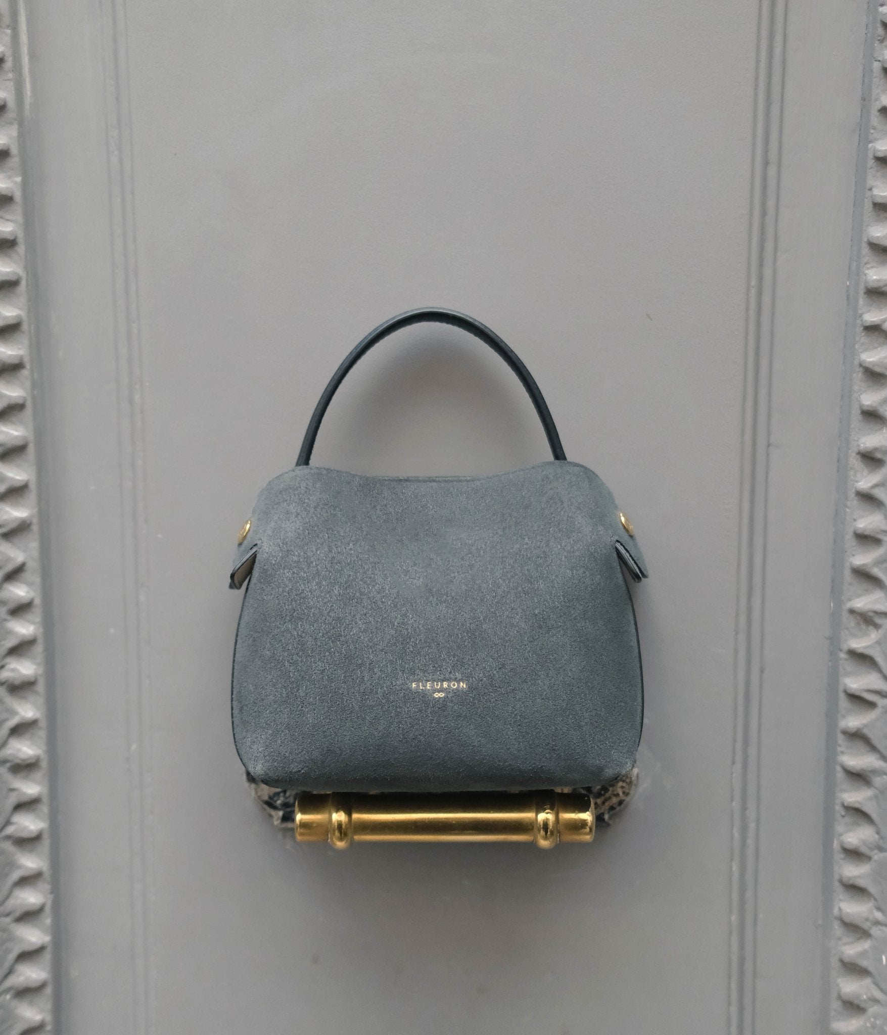 The Mini Swann in Calf Suede Orage, designed in Paris and handcrafted in Italy, stands out with its contemporary elegance and unique simplicity. Its compact size makes it the perfect companion to carry your essentials while adding a modern touch to any outfit.