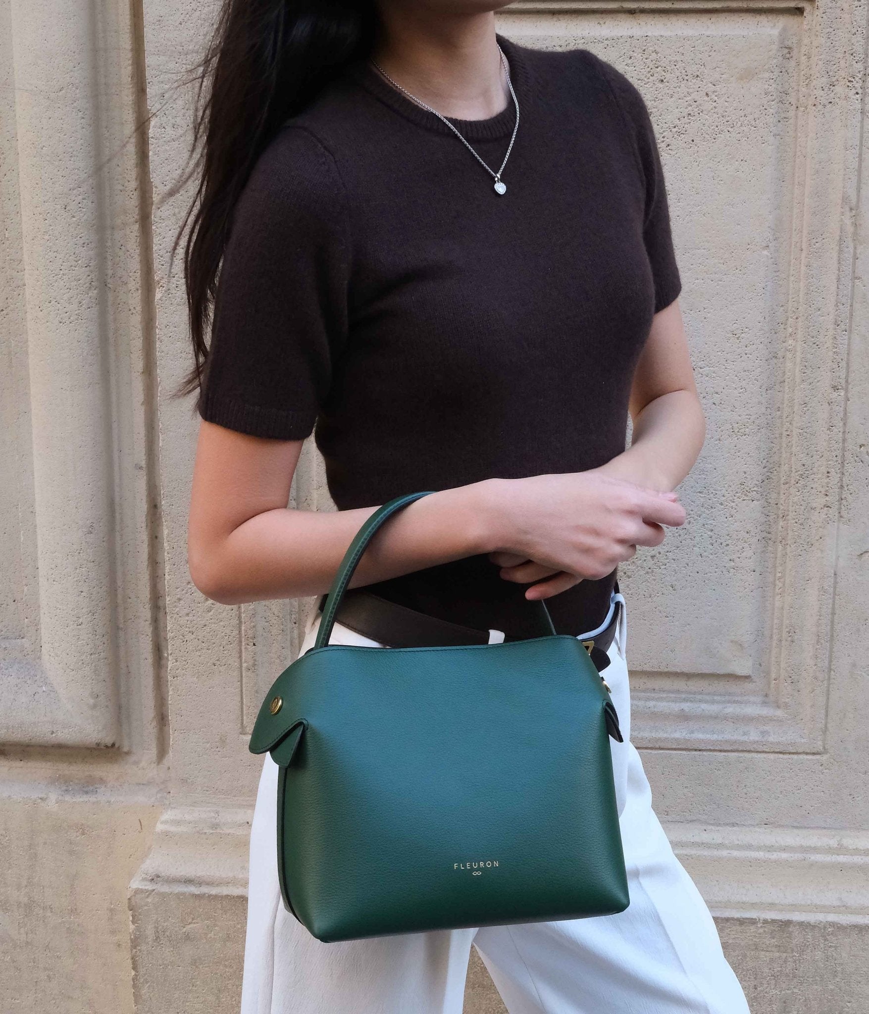Carefully handcrafted in our Italian atelier from grained calf leather, this structured bag features discreet gold-tone hardware. It can be carried by hand, over the shoulder, or crossbody thanks to its removable and adjustable strap. A magnetic closure secures your essentials inside a soft beige microfiber lining. The sides unfold with hidden magnets, allowing the strap to pass over the top for shoulder carry, or remain tucked away for an elegant handheld look.