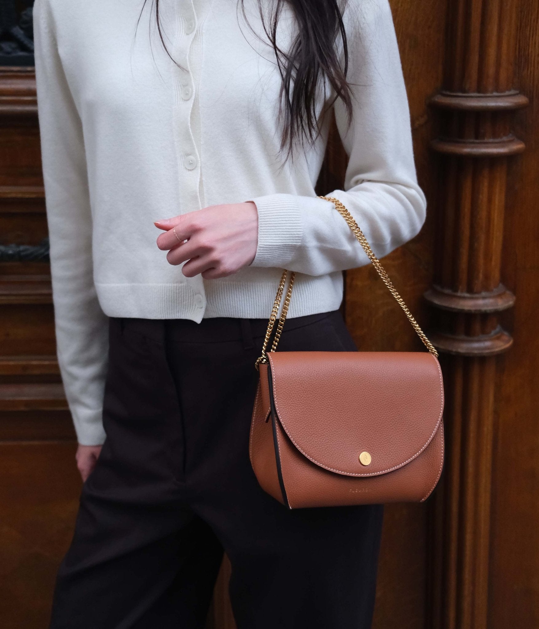 Let yourself be charmed by the natural appeal of the Mini Magnolia in Caramel, a warm, luminous shade that adds a touch of soft character to any outfit. Handcrafted in our Italian workshop, this crossbody bag reflects the excellence of Italian craftsmanship, combining clean lines with discreet everyday functionality.